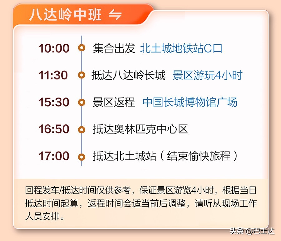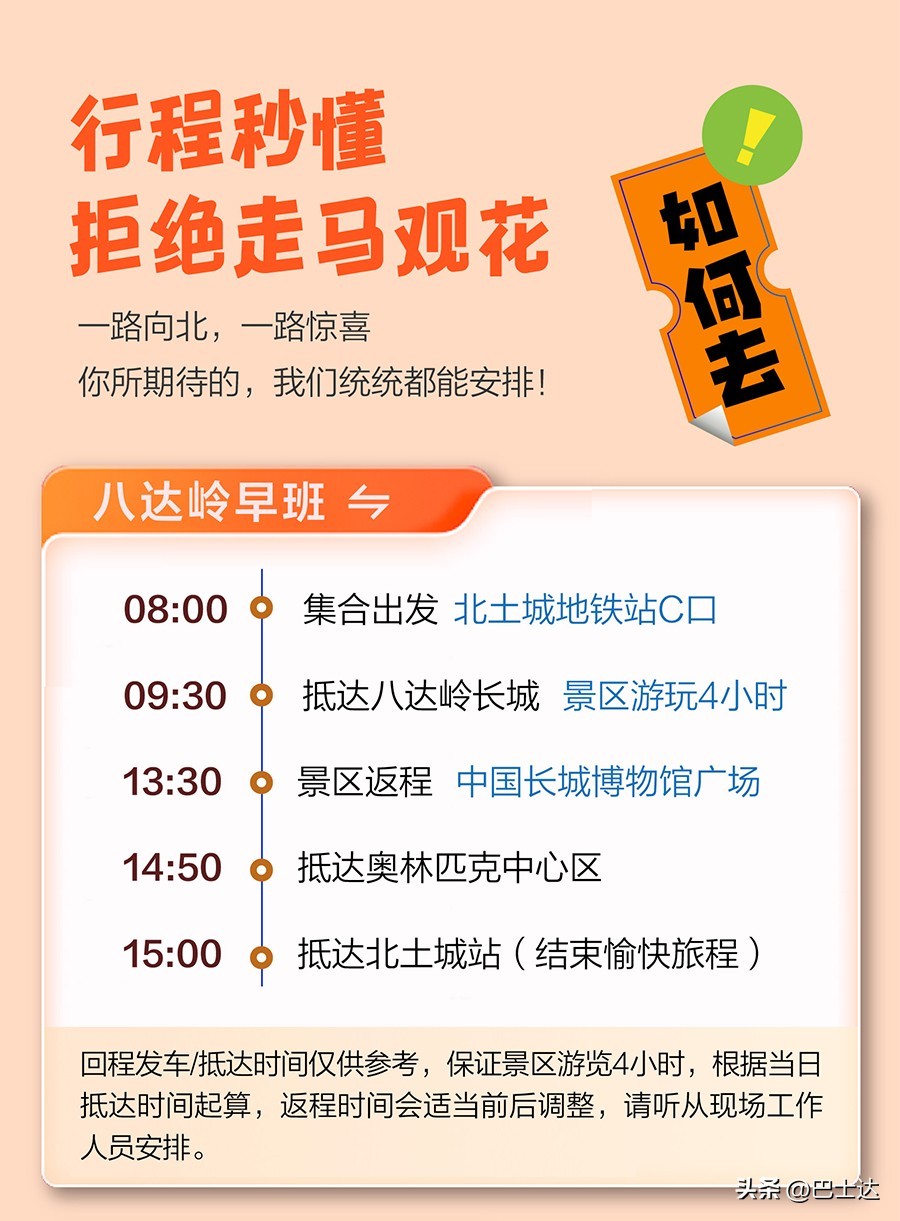 巴士达八达岭长城景区专线时间安排: