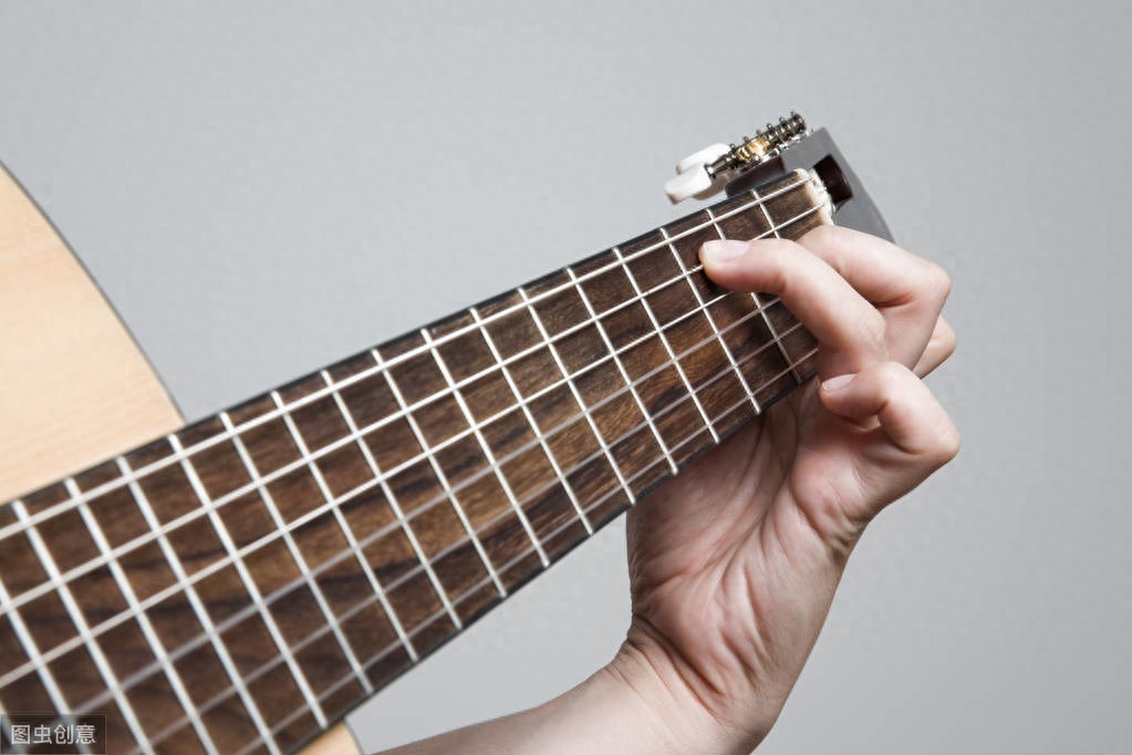 4。由于拍弦的效果是由琴弦撞击琴品产生的声音,所以右手应稍靠近指板。