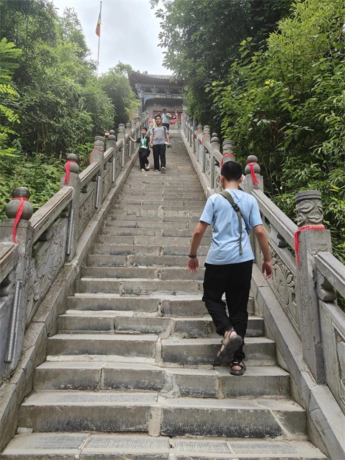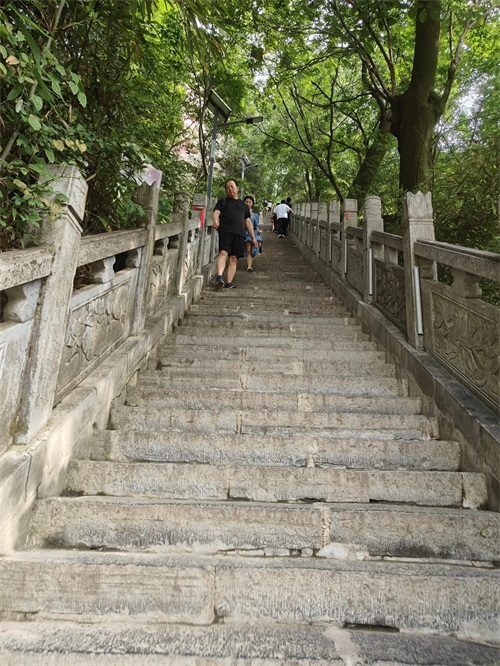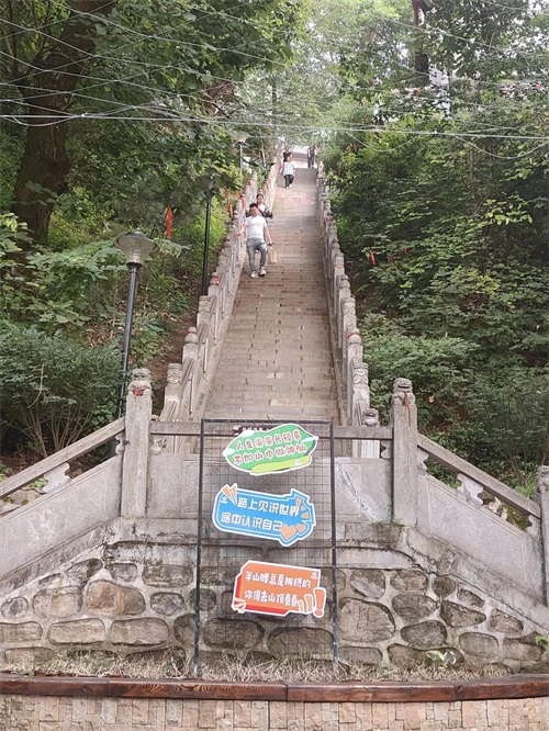 爬山很累,台阶很陡,据说要1888个台阶,有一段路分缓行路和陡坡路,根据自己的体力走适合自己的路,缓行路是仿木的栈道,台阶比较平缓。建议上山走陡坡路,下山走缓坡路。