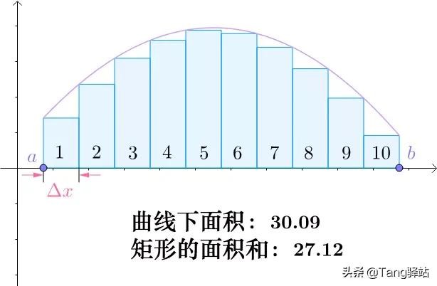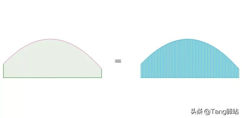 积分,指的是把无数这样微小矩形的面积加起来,以得到曲线下面积: