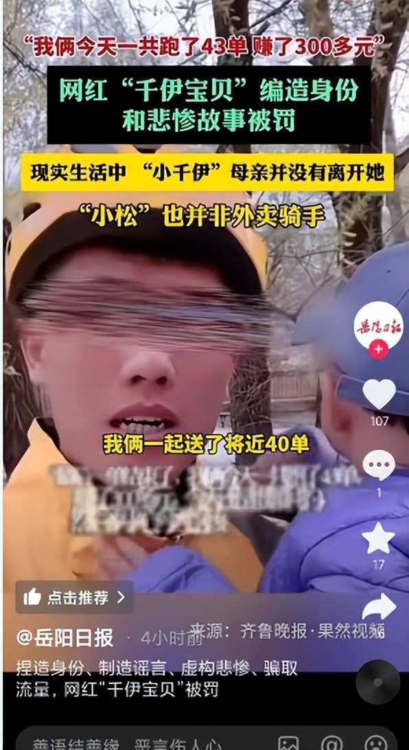 网红“千伊宝贝”带萌娃送外卖,单亲爸爸人设被扒,更多细节曝光