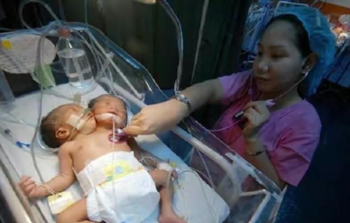 这对连体女婴的情况确实非常特殊,她们共用一个躯体,然而却只有一个半心脏,这种复杂的身体结构让在场的每一位医生都感到震惊和挑战。