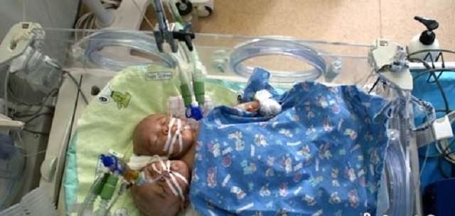 终于,在一阵响亮的啼哭声中,这对连体女婴来到了世界。