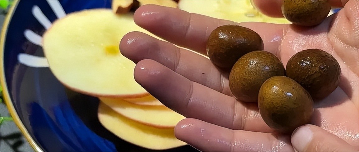 对于桂圆,很多人吃的时候习惯把壳去掉。其实,桂圆壳的营养价值也不容小觑,而且它并没有什么异味,吃的时候尽量不要把壳去掉。你可以用指甲在桂圆壳上面轻轻插上几个小口子,让壳处于一个微微打开的状态,这样在煮的过程中,里面桂圆的营养成分和独特的味道就能更好地被释放出来,也更容易被我们的身体吸收利用。要是没有指甲,也可以用刀轻轻地将桂圆拍一拍,达到同样的效果。处理好的红枣和桂圆,就像两个亲密的小伙伴,静静地躺在苹果片旁边,等待着下一步的融合。