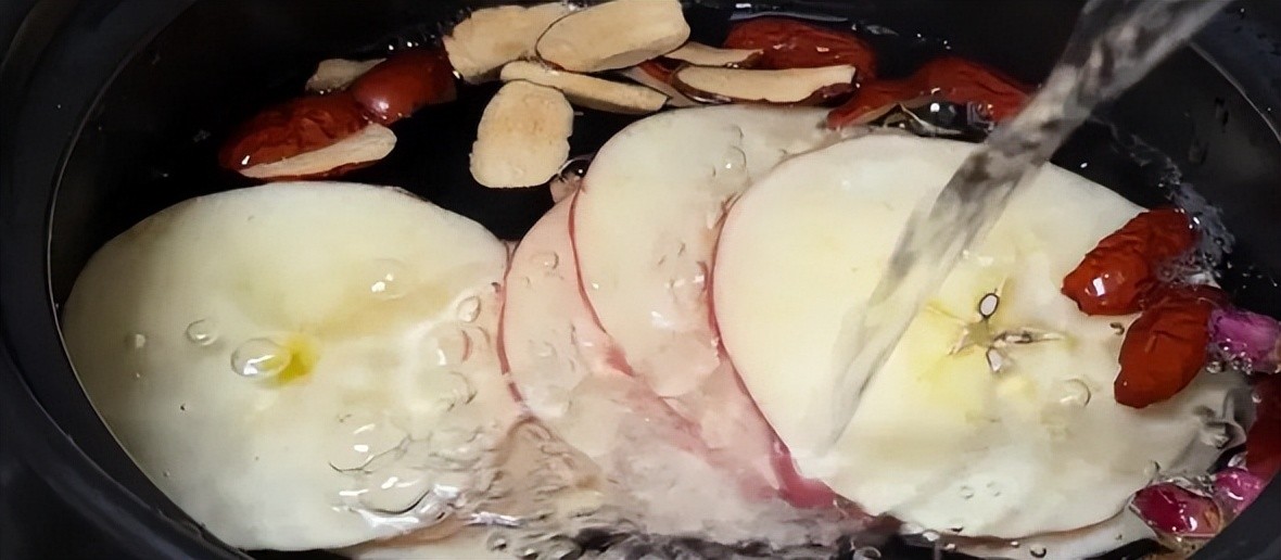 现在,把准备好的苹果片、红枣、桂圆一股脑儿地倒进砂锅里。如果是女性朋友,有条件的话,还可以加入 5 朵玫瑰花。玫瑰花不仅有着迷人的香气,还具有美容养颜的功效,与其他食材搭配在一起,简直是锦上添花。接着,往砂锅里加入足量的清水,这里建议最好用纯净水,因为纯净水没有杂质,口感会更加纯净,能更好地凸显出食材的原汁原味。