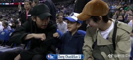 (原标题:邓超夫妇带娃看NBA情绪高涨 孙俪戴小黄帽娇俏 )