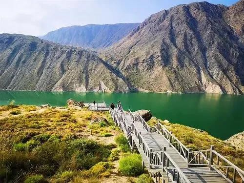 截断昆仑云雨,高峡出平湖。龙羊峡水电站就修建在龙羊大峡谷西端的入口处,它雄伟的坝体,横跨起伏险峻的查纳山和连绵不断的贵南莽原,如一座永不冲破的水泥钢铁长城。龙羊峡水电站坝长1.226公里,坝高178米,相当于60层楼的高度,蓄水库区形成一个面积为383平方公里的巨大人工湖泊。它与以险、奇、幽、深为特色的高原古水道和粗犷苍茫的丹霞土林地质地貌一起成为一道气势磅礴,碧波万顷的独特风景,令世界瞩目,游人止步。