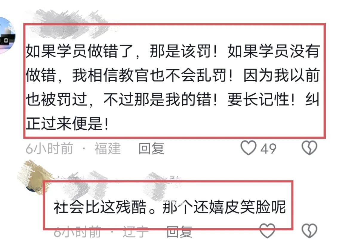 有网友表示,教官不会乱罚,但打人本身就是不对的