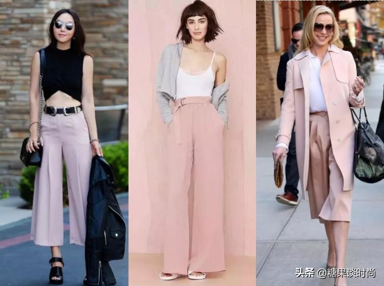 粉色阔腿裤搭配图