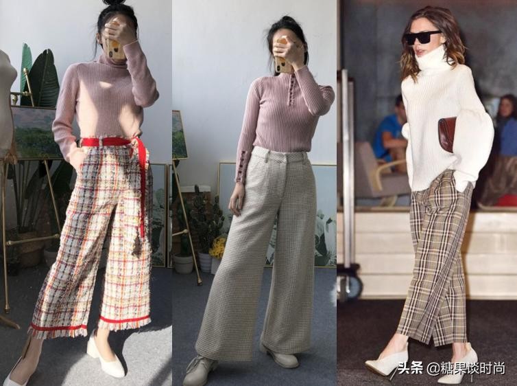 格纹阔腿裤搭配图
