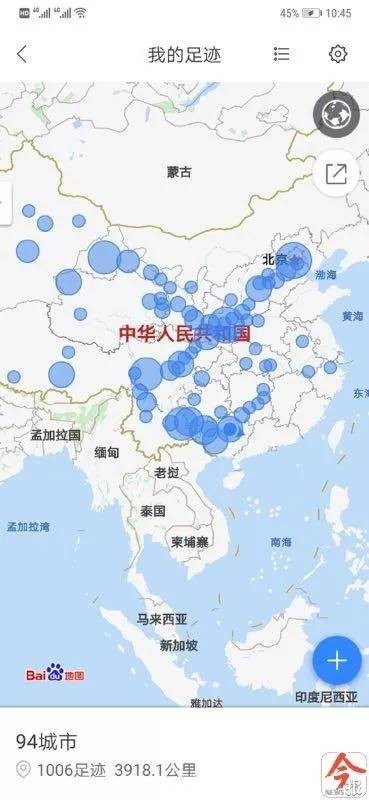 而他们的“走心之旅”也已经结束,从柳州出发,他们去过了祖国的94座城市,行程共3900多公里。在丁一舟的手机地图里,他们留下的足迹连成了一颗蓝色的爱心……他说:“其实无所谓结束(旅程),只是从路在脚下,变成了路在心里。”