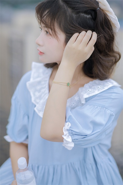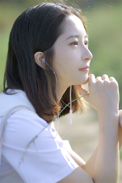 近景拍照,一不小心就会拍出大饼脸,记住不要从正面拍,让模特侧身45度,只露出自己好看的侧颜,手放于耳后或脖子处,眼神看向远处,不经意的抓拍感和温婉的动作很有淑女风。