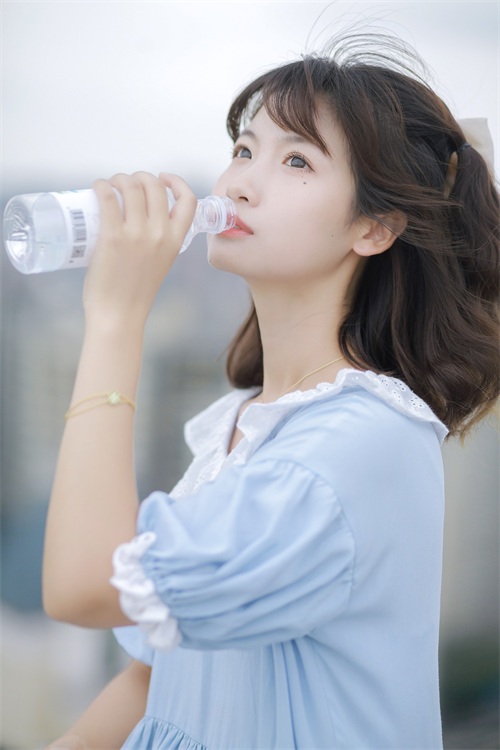 4、手拿水瓶假装喝水