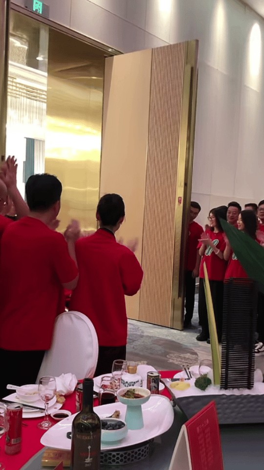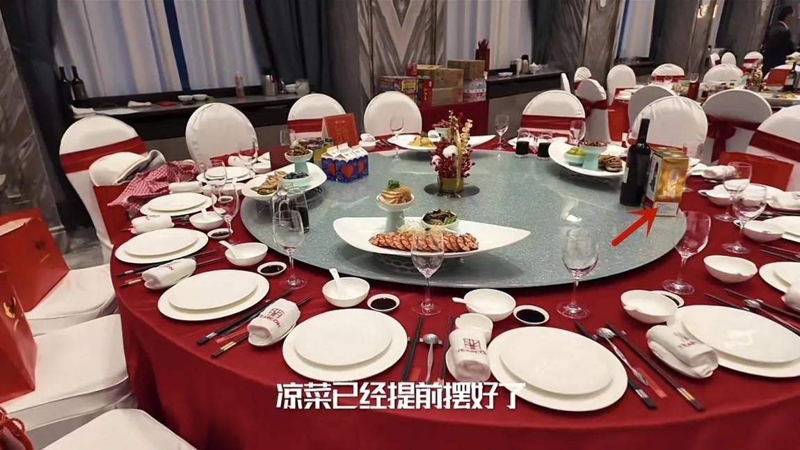 当晚宴席的花费也不低,每桌标配海鲜和茅台,估计价位在5000元左右。与上次儿子的订婚宴相比,这次老板娘李丽萍打扮的颇为低调,只着一身应景的红色套装亮相。