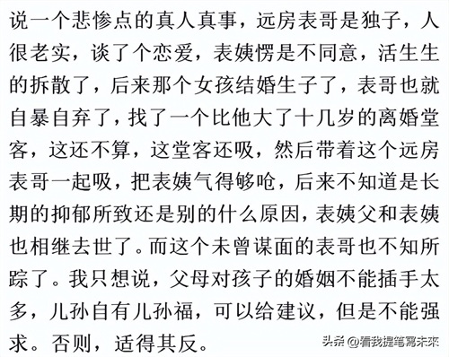 那些曾经被父母拆散的情侣现在怎样了?网友:四五十了也没结婚。