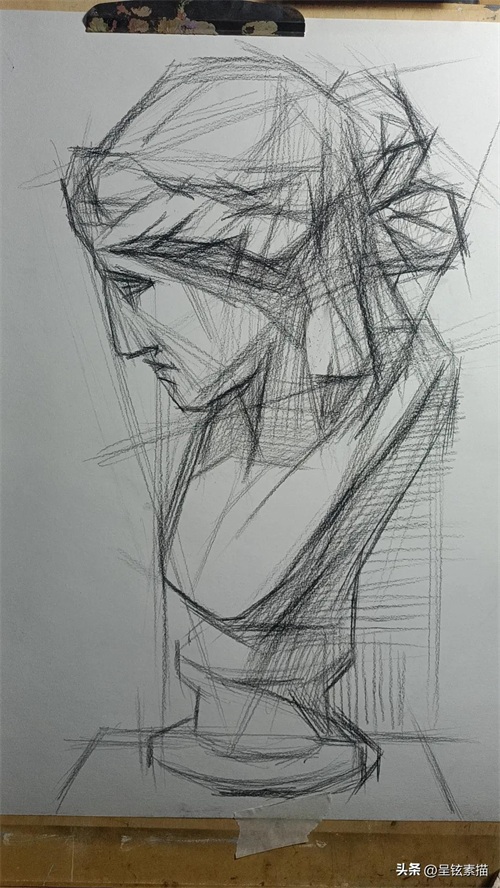 塑造石膏像的立体感是素描的关键。要注意通过线条的深浅、粗细和虚实来表现石膏像的形态和结构,特别是要注意表现石膏像的明暗交界线和投影。在画明暗交界线时,要注意其与石膏像结构的关系,不要画得太生硬或太粗糙。