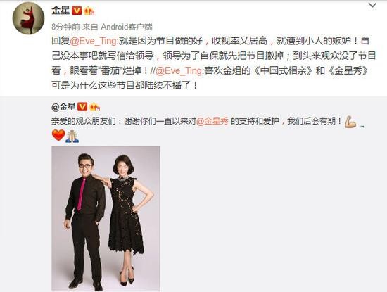 金星公开节目停播原因:收视率高 被小人嫉妒!