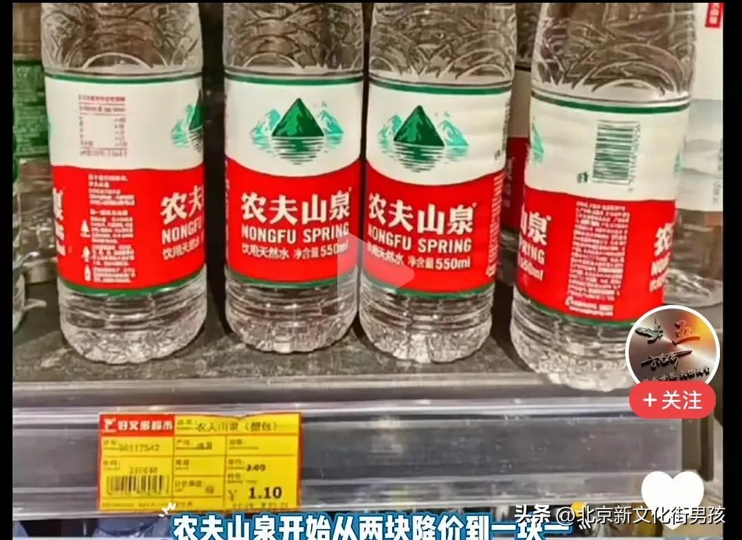 农夫山泉瓶装水的零售价开始从两块一瓶降到1块1。旗下其他饮料产品也开始降价打折。