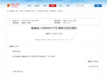 福建省人民政府关于杜清森任职的通知