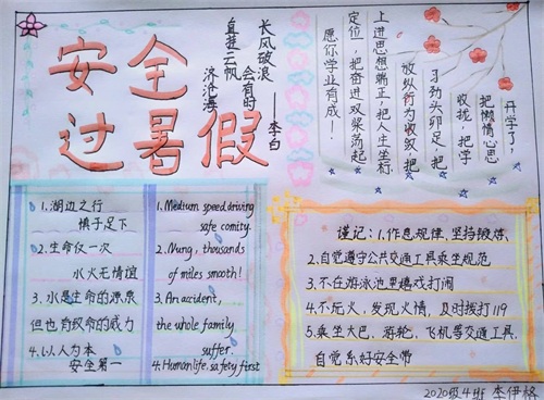 手抄报:以人为本 安全第一|“安全过暑假”烟台中小学生作品选登