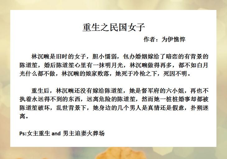 整理一波民国文,有重生梗,打脸虐渣,看几遍都不腻,非常过瘾!