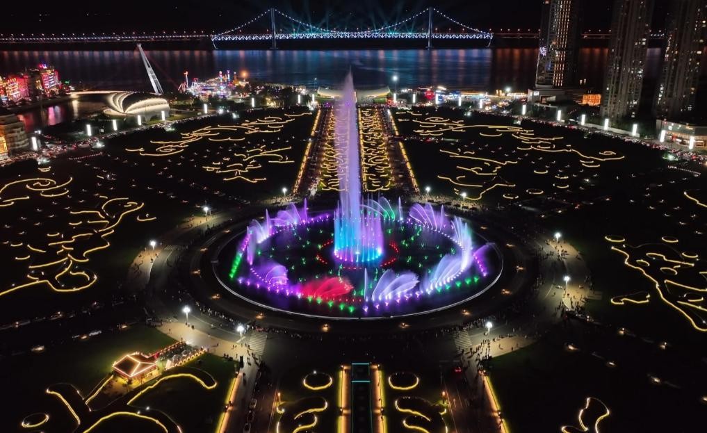 星海广场最引人注目的是它的音乐喷泉,这是亚洲最大的音乐喷泉之一。