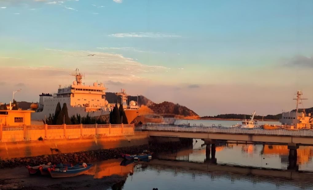 特别是在早晨,当第一缕阳光穿透海面雾气,岛上的红霞映照着岩石和海浪,整个岛屿仿佛被金色的光环包围,展现出一种令人震撼的美丽。