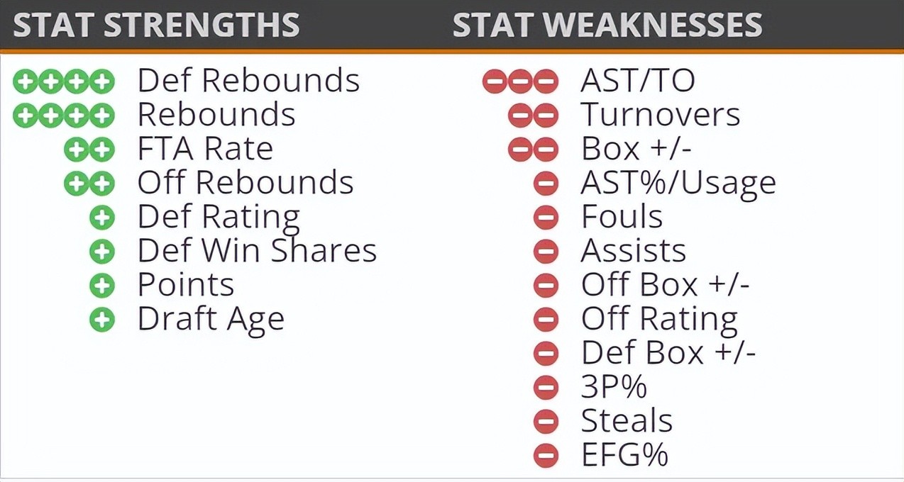 · 积极的防守者,具备一定的和换防外线球员的能力