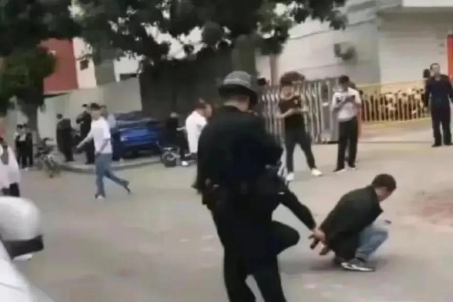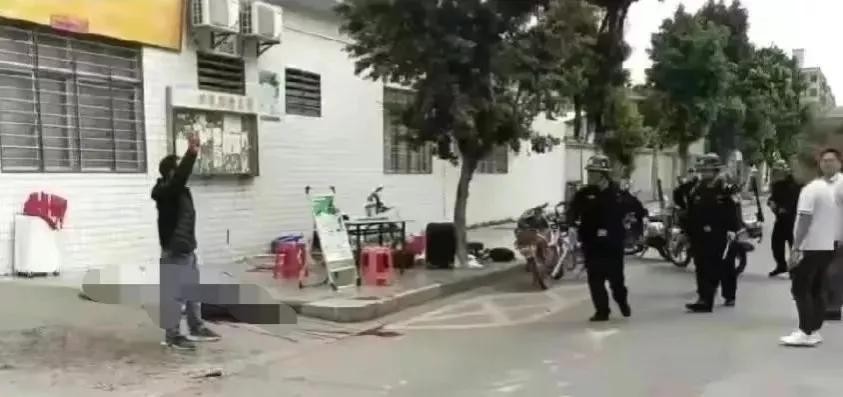 旁边有一些围观群众,有人选择报警,警察很快就来了,男子异常冷静,直接举着手,跟着他们走了。