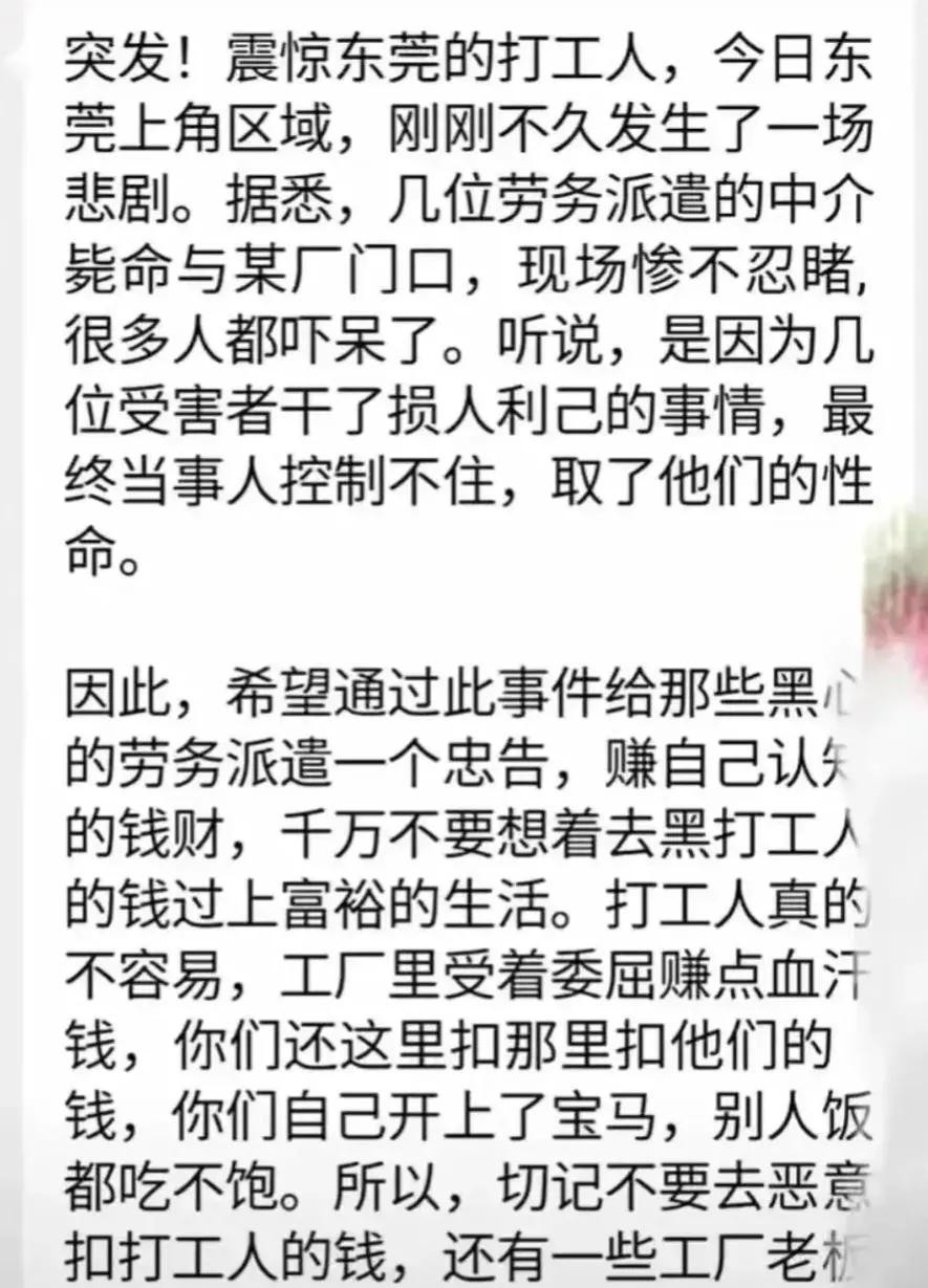 其实很多去电子厂打工的人都被坑过,他们自己没办法找到工作,工厂不直接对外招工,一定要通过劳务中介,而那个抽成狠着呢,直接把人剥层皮,所以这种不规范的事情应该整治整治了。