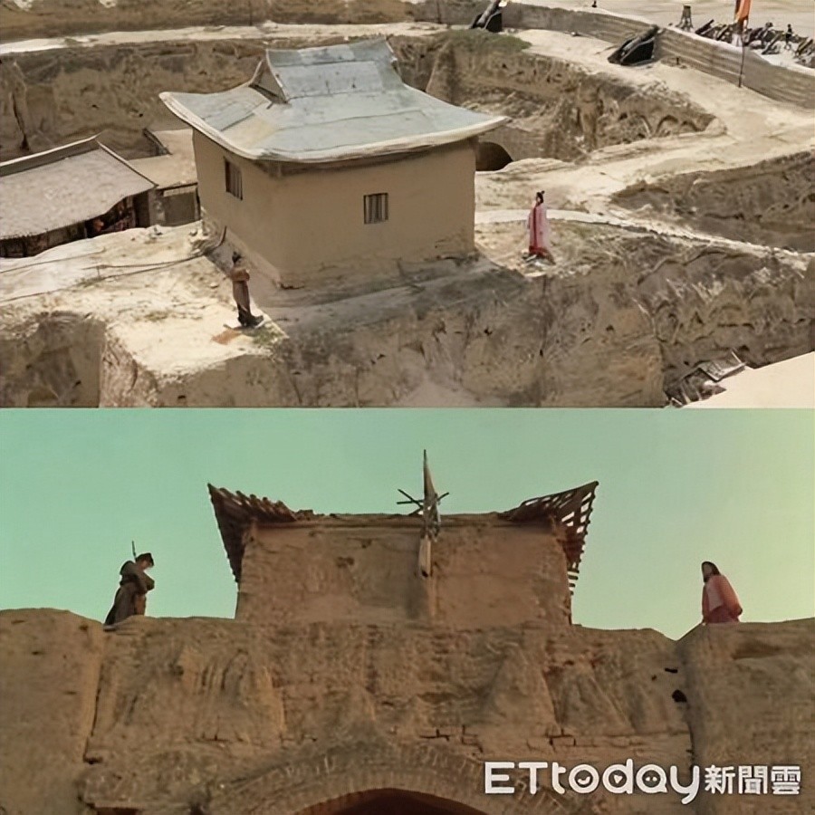 ▲ 宁夏镇北堡西部影视城保留港片《大话西游》,至尊宝与紫霞仙子在城楼的经典场景。(图/记者任以芳摄)