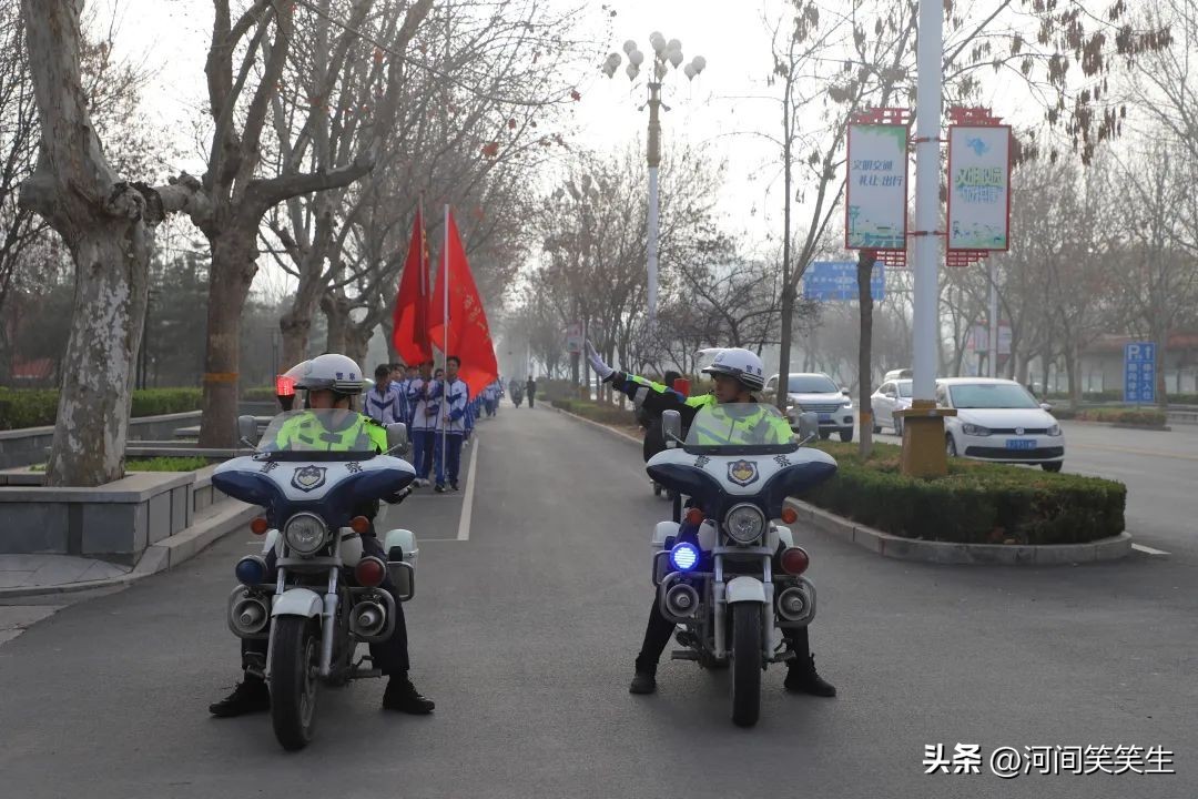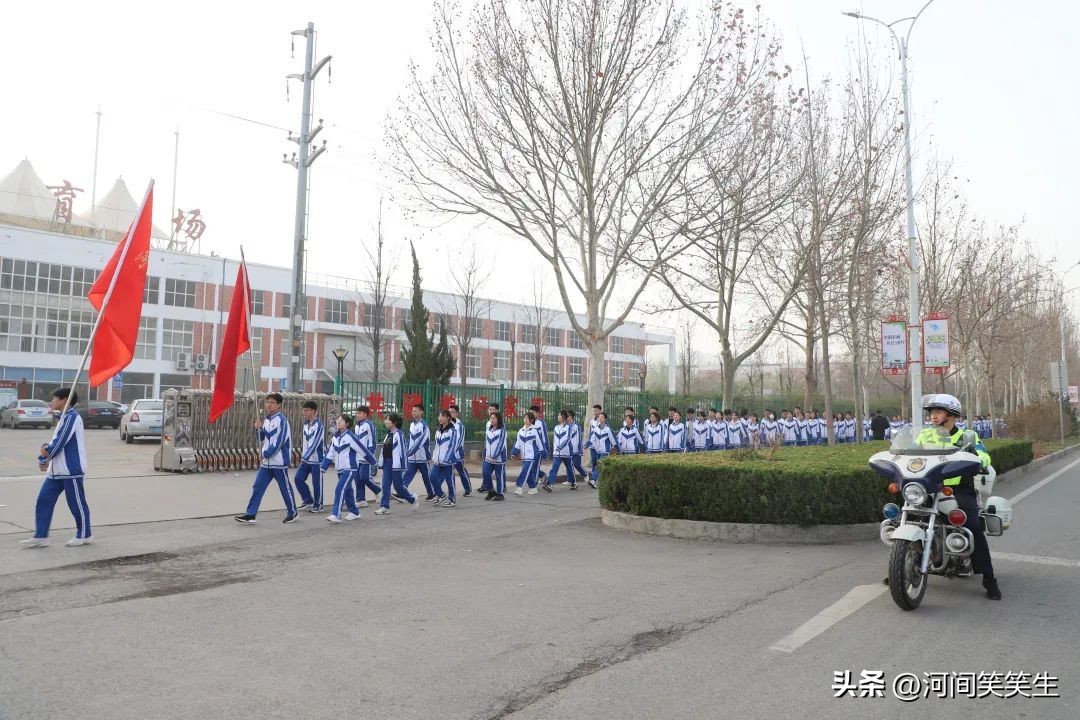 早晨七点,我校师生准时在学校门口集合,准备徒步前往冀中烈士陵园。