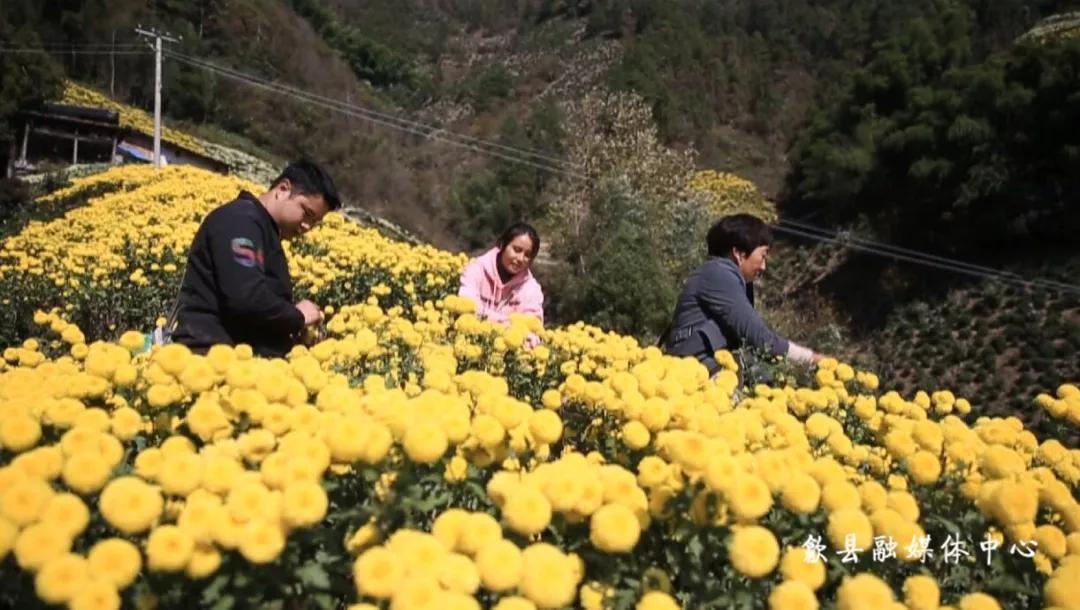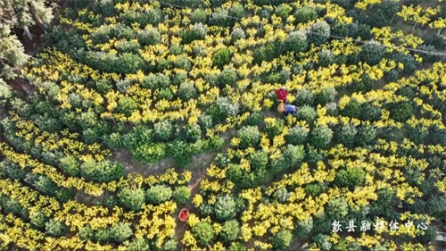 皇菊作为药、茶两用菊花,因形如绣球、色泽金黄,香味浓郁优雅、入口唇齿留香,被称为“菊中之皇”,深受市场青睐。11月的花地里,处处是花农忙碌的身影。