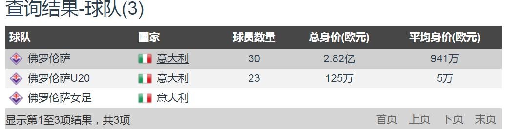 佛罗伦萨球员身价
