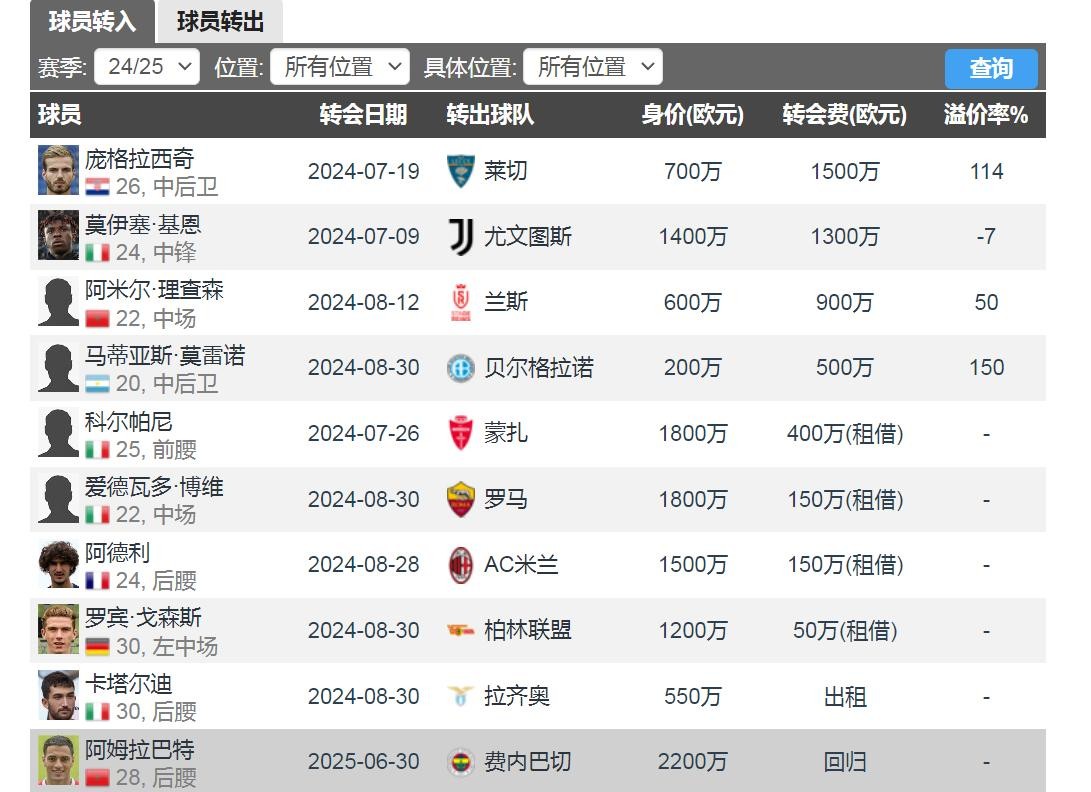 恩波利球员身价