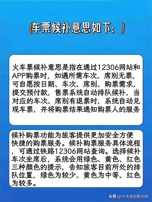 铁路部门推出"候补购票"本是为了提高购票效率,让更多旅客能够顺利买到车票。系统会按照候补顺序,在有退票时自动为旅客购买。表面看来,这种设计能够帮助更多人买到车票,避免反复刷票的困扰。
