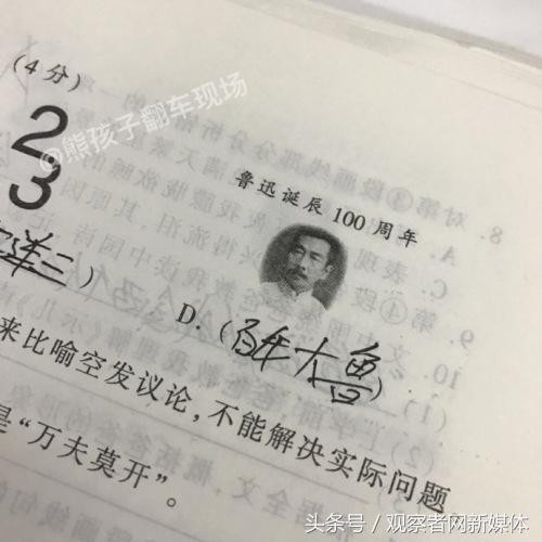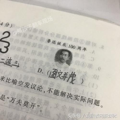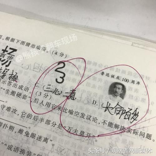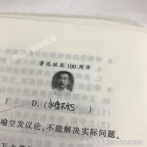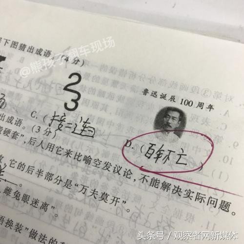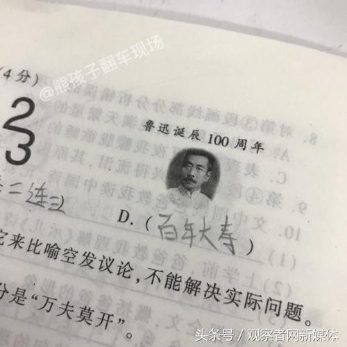 “鲁迅诞辰100周年”打一成语 这位同学的答案竟让人无法反驳……