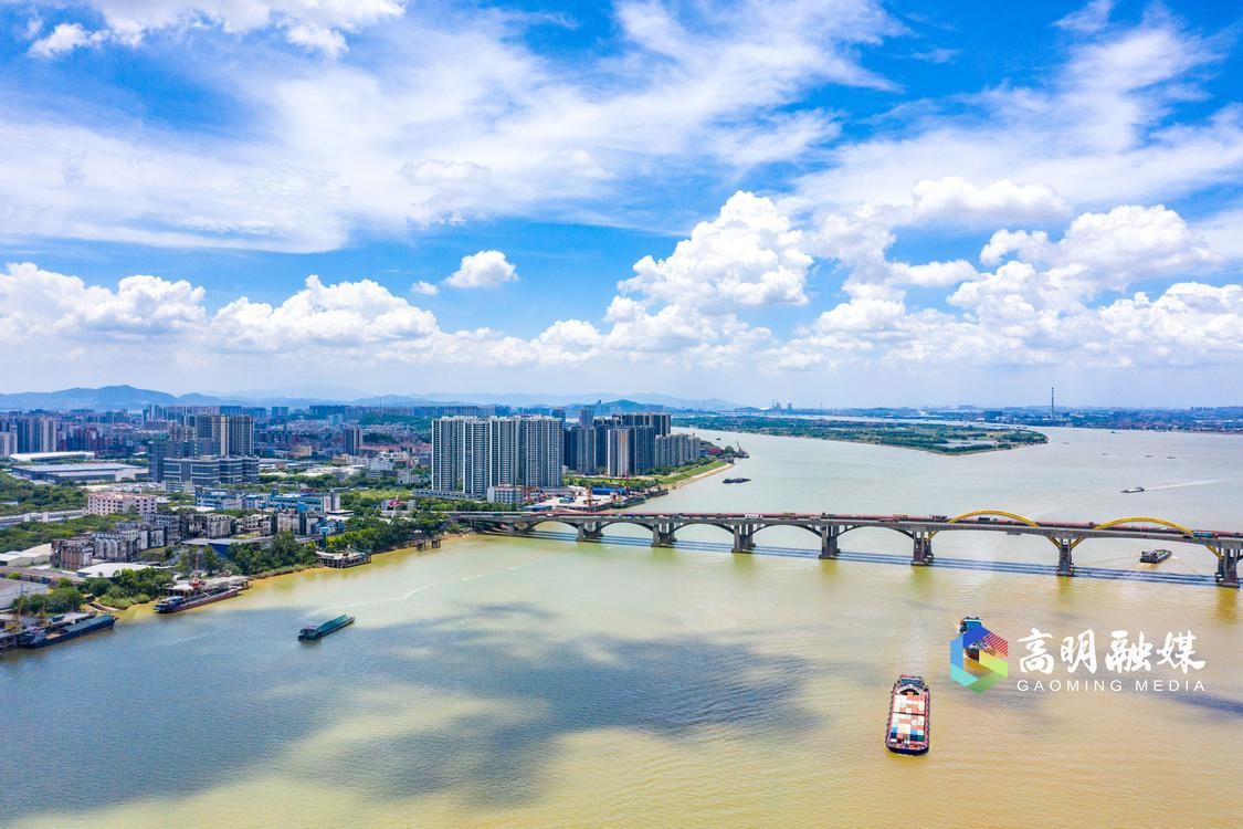 西江奔腾而过,身处岭南水乡的高明,桥梁正是城市里的一道风景。