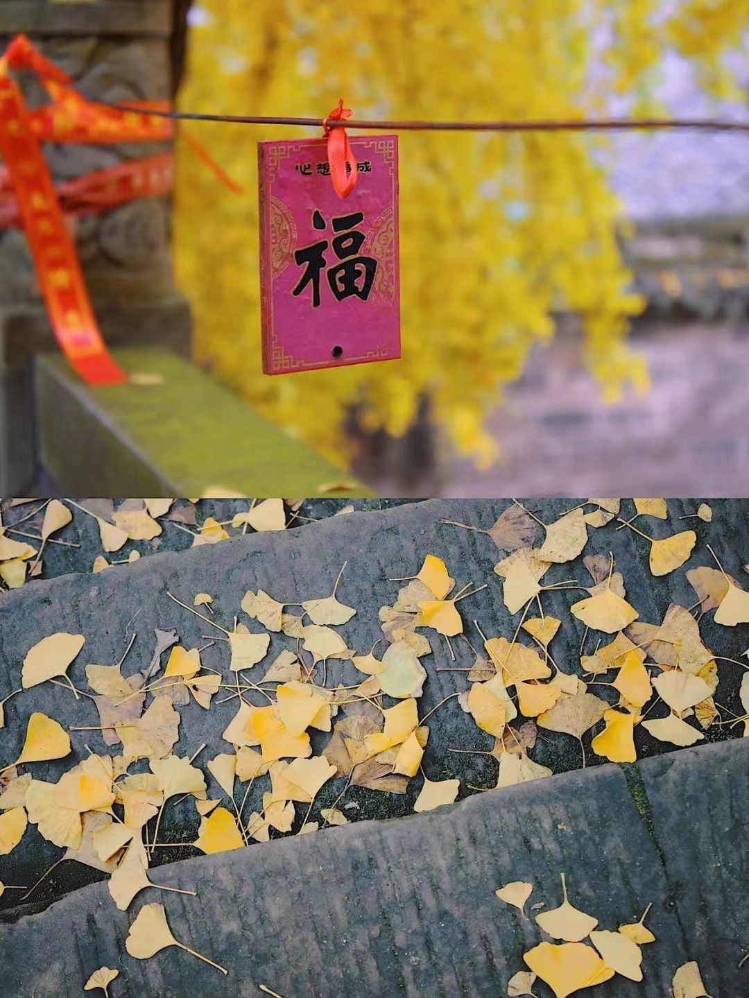院里的僧侣也特别懂秋天的美丽,当银杏开始变黄的时候,他们也就不急于清扫地上掉落的黄叶了,满地金黄像是铺了一层地毯,让人舍不得去踩。