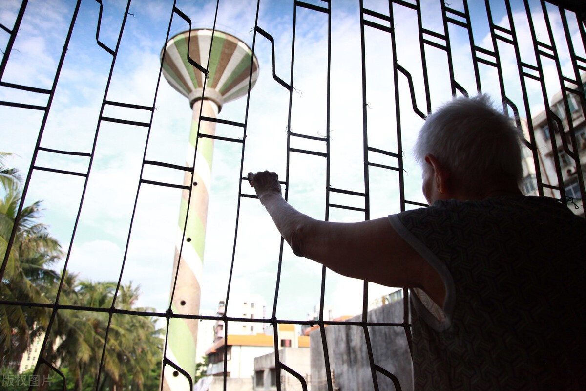 老人把轮椅推到窗前,仰着窗外,默不作声。