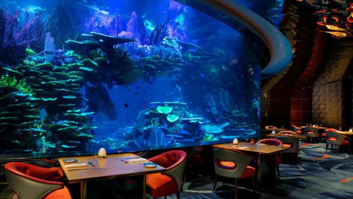 另一个来自迪拜的奇妙场所,Al Mahara 很容易成为世界上最离谱的餐厅之一。 如果你负担得起,这个令人惊叹的地方可能是迪拜难忘假期的樱桃。 拥有两层楼高的豪华套房,更不用说一些高端设施,您将在 Burj Al Arab 的整个逗留期间得到宠爱。