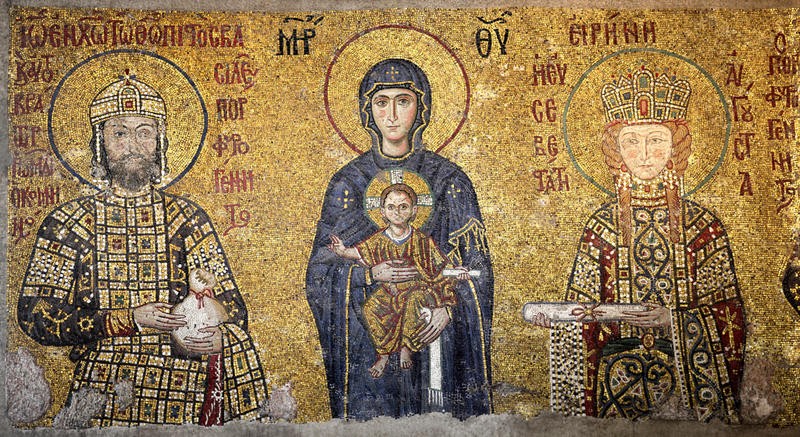 Comnenus的马赛克位于伊斯坦布尔圣索非亚大教堂南廊的东墙上。