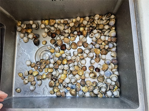 海鲜种类:蛤蜊、蛏子、月亮贝等。