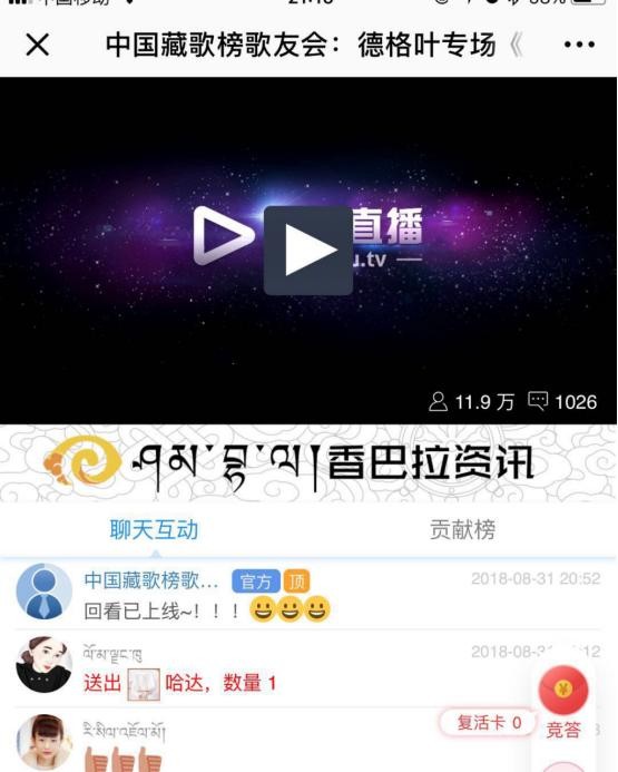 现场演出期间,我们的主持人也一直在关注网络直播的情况,很多粉丝通过网络直播实时和现场的德格叶进行互动。