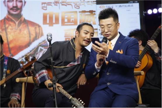 德格叶和主持人林丰一起看网络直播中粉丝的留言