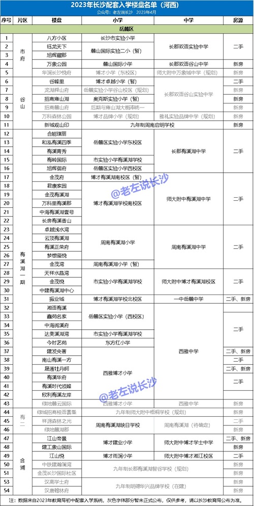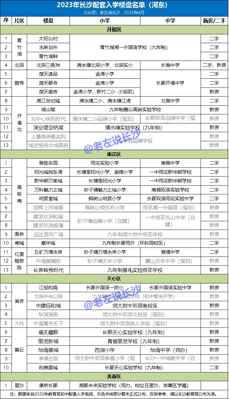今天(4月1日),长沙市教育局网站的中小学入学报名系统开放,长沙城区2023年小学的学区、初中配套入学楼盘一并公布。