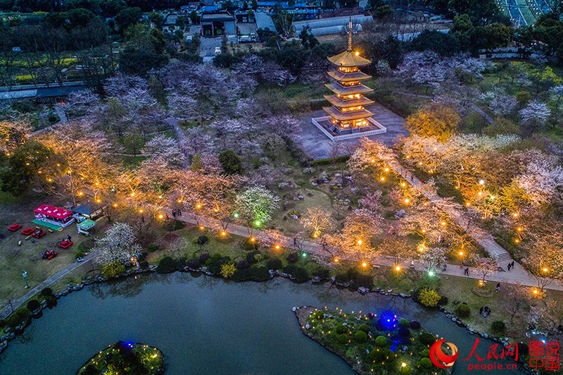 武汉东湖磨山樱园位于东湖梅园近旁的国家5A景区东湖磨山景区南麓,占地260亩,有樱花树10000株。园内种植的第一批樱花由日本前首相田中角荣赠送给邓颖超,再由邓颖超转赠武汉东湖。绝大部分樱花是中日双方1998年共同投资栽种的。武汉东湖磨山樱园与日本青森县的弘前樱花园,美国的华盛顿州樱花园并称为世界三大樱花之都。磨山樱花园以仿日本建筑的五重塔为中心,配以日本园林式的湖塘,小岛,溪流,虹桥,鸟居,斗门,甚至管理间和售票处也是设计精细的仿日建筑。樱花开放期间,该园将定时播放日本民间小曲,并提供众多日本风味小吃。整个景区体现出浓郁的东瀛风情。