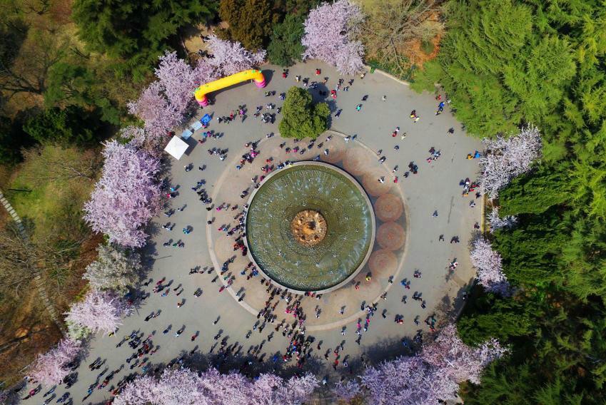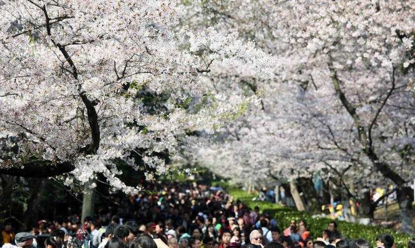 武大樱花开于三月中旬,至下旬最为鼎盛,花期较短,仅13-20天左右。每年樱花盛开之时,来自全国各地的游人旅客如织如潮,有百万以上的游客慕名而来。樱花大道旁摩肩擦踵,樱花纷飞,好不美丽!每当三月,校园就成为了樱花的海洋,各地的游人们纷纷前来观看,而学校领导和学生均表示从未组织樱花节,游客都是慕名而来自发入校,但学校对组织学生们为游客服务,樱花盛开时节,樱园酷似花的海洋,成千上万游客慕名而至,留连观赏,如醉如痴,大有“三月赏樱唯有武大”的意趣。