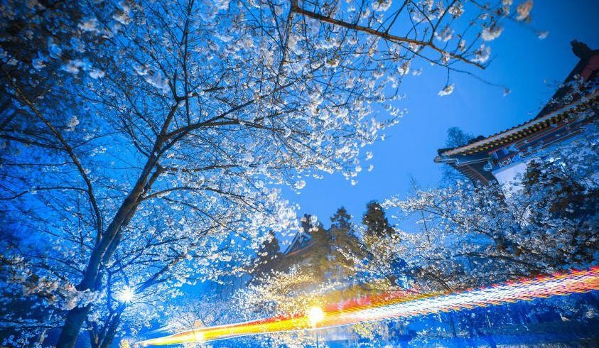 每年3月下旬、4月上旬是鸡鸣寺樱花开的最盛的时候,从鸡鸣寺到和平门一线有一段颇为美妙的樱花路,路两旁都是樱花,再衬托古雅的鸡鸣寺,显得格外有韵味。樱花盛开时节,抬头望去,眼前的樱花如雪如云,十分壮观。