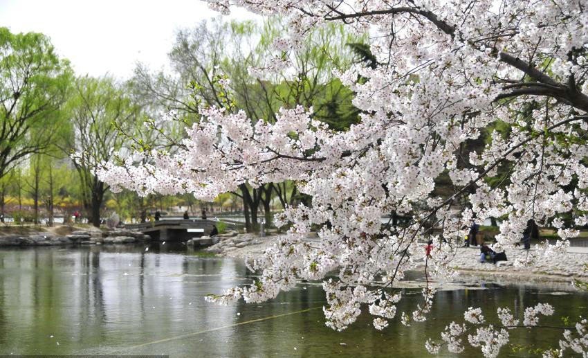 在 1973 年春,依山傍水处栽种了象征中日友好的大山樱。1990 年前后,公园开始大规模整理山水,陆续从我国东北、山东等省引进 14个品种,2000余株樱花栽于园内。这里如今是樱花文化和中日友谊的见证。在西门入口有冰心亲题的礼赞石刻,西门附近有不少被认养和栽种的樱花树。